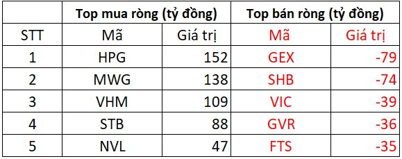 Chiều mua, cổ phiếu HPG được mua ròng mạnh nhất toàn thị trường với giá trị lên tới 152 tỷ đồng, MWG và VHM cũng được mua ròng mạnh tay lần lượt 138 tỷ và 109 tỷ đồng. Ngoài ra, STB và NVL đồng loạt được mua ròng từ 47 tới 88 tỷ đồng.