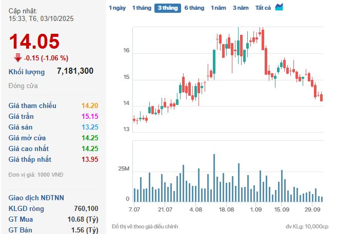 Trên thị trường chứng khoán, kết phiên 3/10, giá cổ phiếu POW ở mức 14.050 đồng/cổ phiếu, giảm 1,06% so với phiên trước, khối lượng cổ phiếu giao dịch khớp lệnh đạt gần 7,2 triệu đơn vị. Hiện vốn hóa thị trường của PV Power đạt hơn 32.900 tỷ đồng.