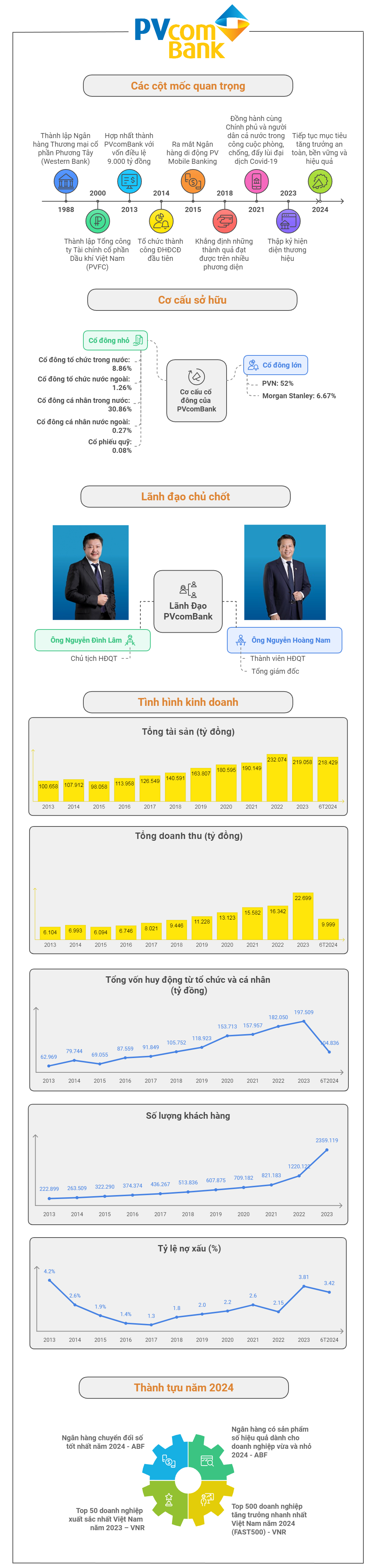 Ngân hàng TMCP Đại chúng Việt Nam (PVcomBank) được thành lập cuối năm 2013 từ hợp nhất Tổng công ty Tài chính Dầu khí Việt Nam (PVFC) và Ngân hàng Phương Tây (WTB). Đến nay, ngân hàng này có vốn điều lệ 9.000 tỷ đồng.