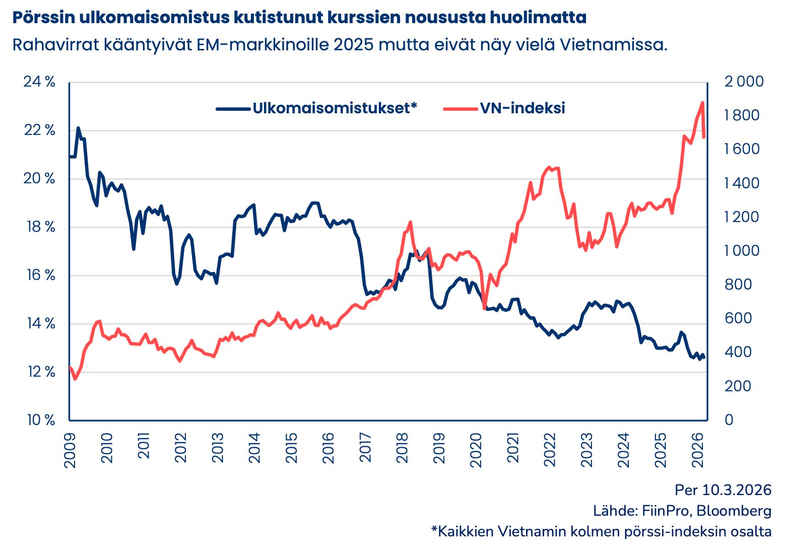 Ông Petri Deryng - người đứng đầu Pyn Elite Fund - một trong những quỹ ngoại quy mô hàng đầu thị trường chứng khoán Việt Nam, vừa có thư gửi nhà đầu tư quý 1/2026 giữa lúc căng thẳng tại Trung Đông đang gây áp lực lên thị trường tài chính toàn cầu. Ông cho biết, kể từ khi chiến sự bùng nổ, quỹ đã giao dịch khoảng 200 triệu EUR trong danh mục đầu tư, tính cả mua và bán.