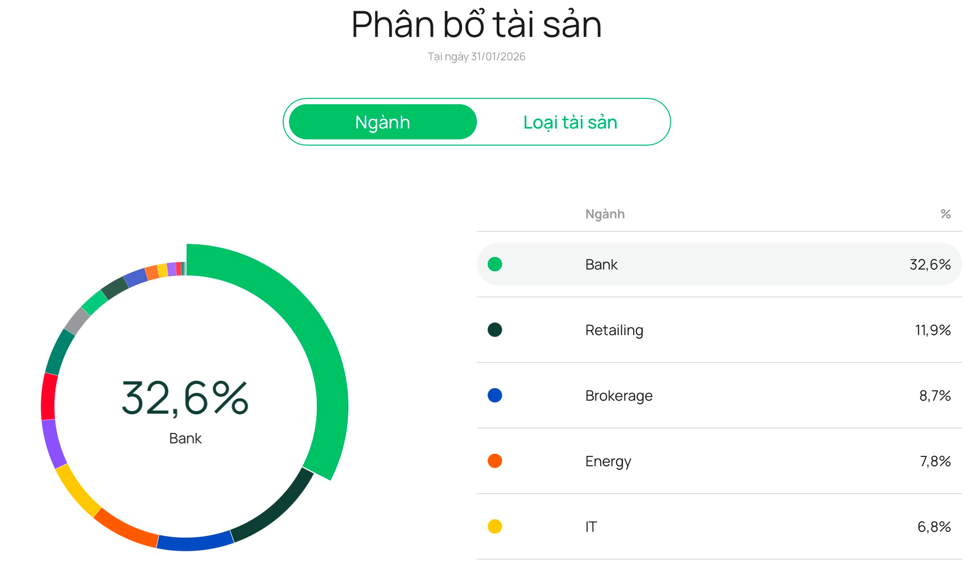 DCDS hiện là một trong những quỹ mở có quy mô lớn nhất tại Việt Nam. Tại thời điểm cuối tháng 1, giá trị tài sản ròng (NAV) của DCDS đạt gần 5.900 tỷ đồng, trong đó, nhóm ngân hàng chiếm tỷ trọng lớn nhất với gần 33% cùng 7 đại diện lọt top 10 danh mục. Các nhóm ngành xếp sau về mặt tỷ trọng lần lượt là bán lẻ, chứng khoán, năng lượng và công nghệ…