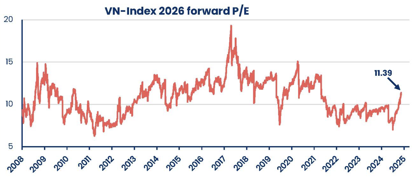 Nhà quản lý quỹ cho rằng, trong ba năm 2022–2024, VN-Index diễn biến chậm chạp và ghi nhận mức giảm 15,4% nhưng giờ đây mọi thứ đã khác. Thị trường chứng khoán đang có đà tăng trưởng tốt, và tốc độ thậm chí có thể còn tăng tốc hơn nữa.
