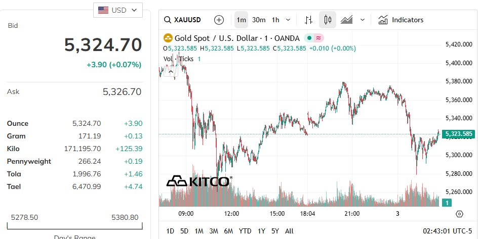 Động thái “đứng ngoài” của SPDR diễn ra trong bối cảnh giá vàng thế giới điều chỉnh nhẹ về khoảng 5.324 USD/oz, thấp hơn so với mức đỉnh trong phiên giao dịch đêm qua là 5.419 USD/oz. Trước đó, giá vàng đã phục hồi mạnh và gần như lấy lại phần lớn mức giảm sau cú rơi vào cuối tháng 1. Dù vậy, so với đỉnh lịch sử trên 5.600 USD/oz, giá vàng hiện vẫn thấp hơn khoảng 5%.