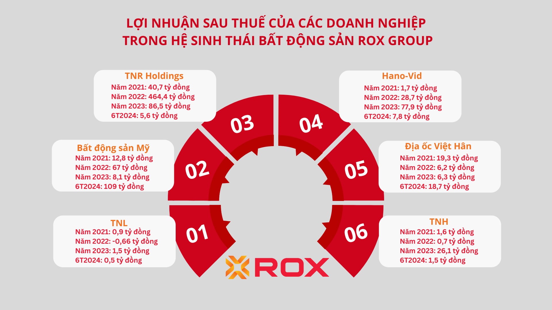 Tăng trưởng lợi nhuận chậm lại hiện là bức tranh chung của nhiều doanh nghiệp thuộc ROX Group, nhất là khi hệ sinh thái này lấy bất động sản làm cốt lõi. Trong giai đoạn thị trường bất động sản nhiều biến động vừa qua, phần lớn các doanh nghiệp bất động sản thuộc ROX Group đối mặt nhiều khó khăn.