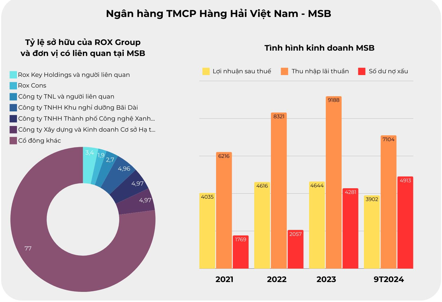 Song song với mảng bất động sản, từ năm 2007, ROX Group đã đi vào lĩnh vực đầu tư tài chính. Đây là một trong những mũi nhọn kinh doanh của tập đoàn, và Ngân hàng Hàng hải Việt Nam (MSB) trở thành đối tác tài chính quan trọng. Theo công bố của MSB, hiện nhóm doanh nghiệp thuộc ROX Group và người liên quan đang nắm giữ gần 23% cổ phần MSB.