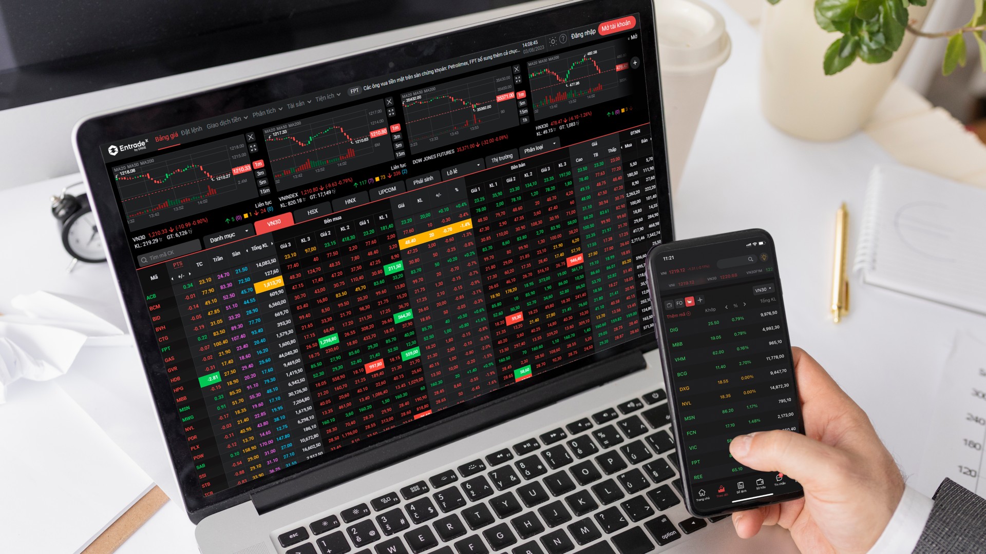 Đáng chú ý, toàn bộ các chỉ số ngành trên HOSE đều giảm điểm. Nhóm công nghệ thông tin (VNIT) giảm mạnh nhất tới 19,04%, bất động sản (VNREAL) giảm 14,51% và năng lượng (VNENE) giảm 14,21%.