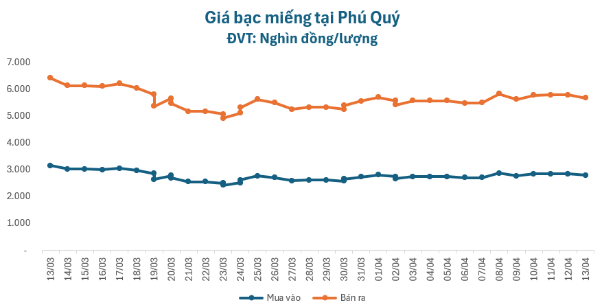 Giá bạc đảo chiều lao dốc, tại Phú Quý, giá bạc miếng niêm yết ở mức 2.793.000 – 2.879.000 đồng/lượng, giảm 58.000 đồng ở chiều mua và giảm 60.000 đồng ở chiều bán so với giá chốt phiên tuần trước.