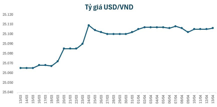 Vào sáng nay, tỷ giá trung tâm giữ ở mức 25.106 VND/USD, tăng 1 đồng so với giá chốt phiên tuần qua. Tại một số ngân hàng thương mại, giá USD hầu hết cũng được điều chỉnh tăng.