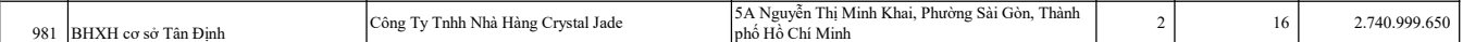 Cụ thể, công ty mẹ là Công ty Cổ phần In Dining đã chậm đóng BHXH 11 tháng cho 160 lao động với số tiền hơn 8 tỷ đồng. Ngoài ra, Chư Công ty TNHH Nhà hàng Crystal Jade chậm đóng 16 tháng với số tiền hơn 2,7 tỷ đồng.