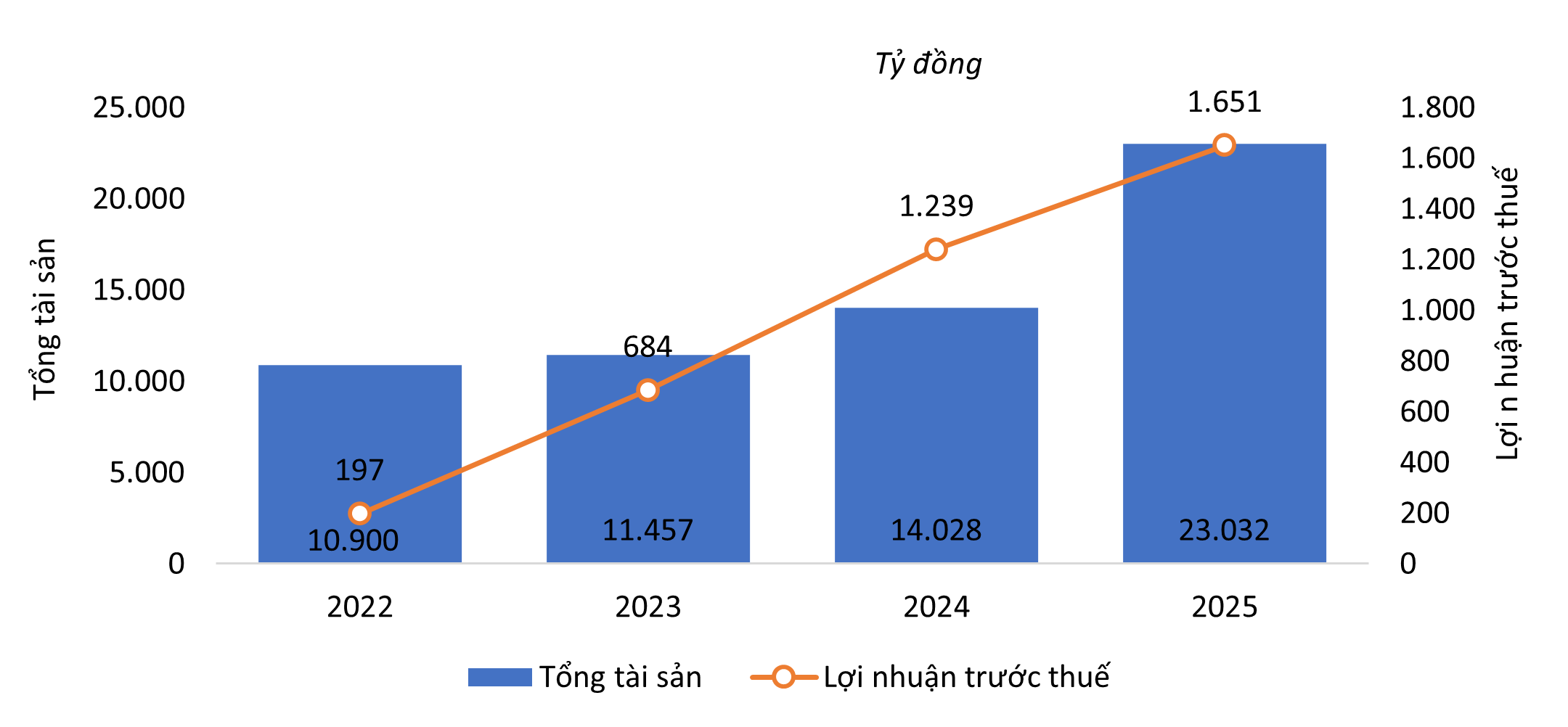 Riêng quý IV/2025 ghi nhận 271,5 tỷ đồng lợi nhuận trước thuế, trong bối cảnh thị trường chứng khoán Việt Nam phân hóa mạnh, đa số cổ phiếu chịu áp lực điều chỉnh và cạnh tranh trong ngành ngày càng gia tăng.