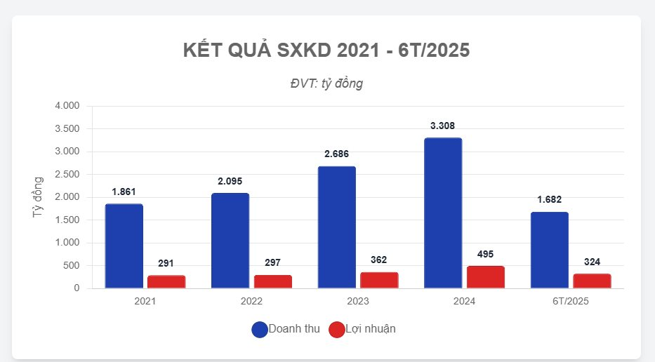 Nhìn lại nửa đầu năm 2025, HHV đã ghi nhận những kết quả kinh doanh ổn định. Doanh thu hợp nhất đạt trên 1.682 tỷ đồng, tăng 12% so với cùng kỳ, và lợi nhuận sau thuế đạt 324 tỷ đồng, tăng mạnh 33%, hoàn thành 58% kế hoạch cả năm.