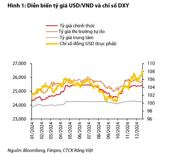 Tỷ giá USD/VND đã có một năm biến động tương đối mạnh với áp lực mất giá tiền đồng đặc biệt tăng cao trong quý II và quý IV. Trong báo cáo cập nhật vĩ mô mới công bố, chuyên gia phân tích tại công ty chứng khoán Rồng Việt (VDSC) nhận định, diễn biến tỷ giá USD/VND năm nay phụ thuộc vào xu hướng lên xuống của đồng USD, hệ số tương quan của chỉ số DXY và tỷ giá USD/VND trong năm 2024 là 0,67, tăng nhẹ so với mức 0,63 trong năm 2023.