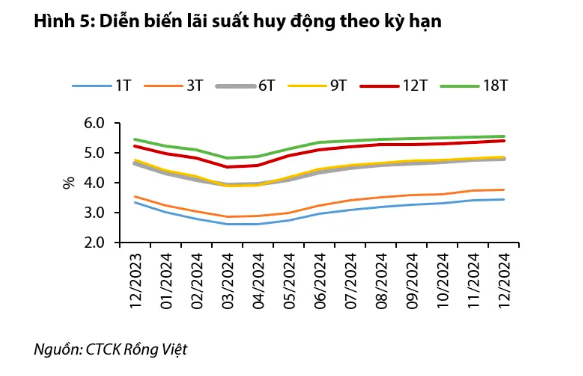 Trên thị trường 1, nơi diễn ra giao dịch giữa ngân hàng thương mại và khu vực doanh nghiệp/dân cư, lãi suất huy động có một nhịp giảm khá mạnh vào đầu năm khi tăng trưởng tín dụng tăng chậm. So với cuối năm 2023, lãi suất huy động bình quân các kỳ hạn 1 tháng, 6 tháng và 12 tháng tăng khoảng 10-15 điểm cơ bản. So với mức lãi suất thấp nhất được ghi nhận vào cuối quý I, lãi suất huy động bình quân các kỳ hạn 1 tháng, 6 tháng, 9 tháng tăng khoảng 90 điểm cơ bản.