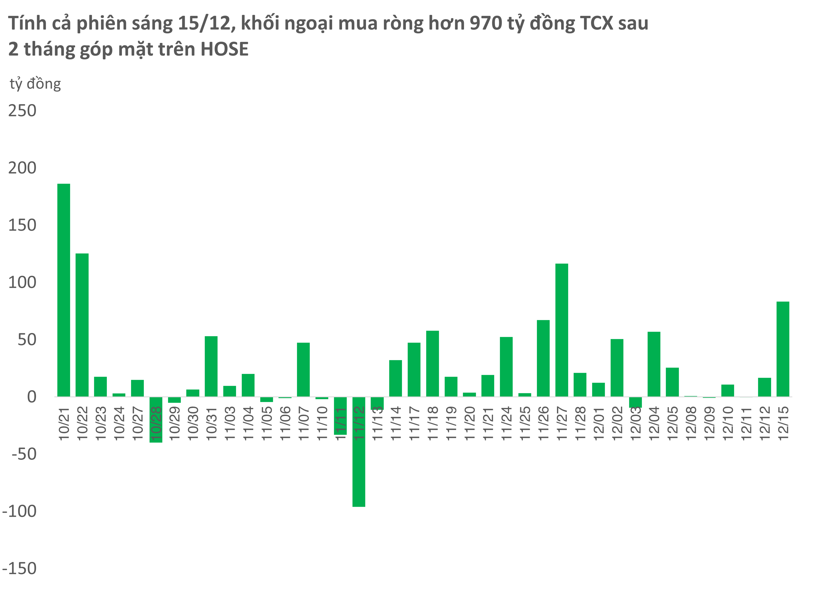 Tính đến cuối phiên sáng, nhà đầu tư nước ngoài đã mua ròng hơn 80 tỷ đồng TCX nhiều nhất trên HOSE, tạo điểm nhấn hiếm hoi cho nhóm cổ phiếu chứng khoán vốn đang vận động kém tích cực trong những tháng cuối năm 2025.