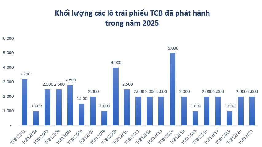 Như vậy, chỉ trong tháng 10/2025, Techcombank đã phát hành 5.000 trái phiếu, tương ứng với giá trị thu về khoảng 5.000 tỷ đồng.