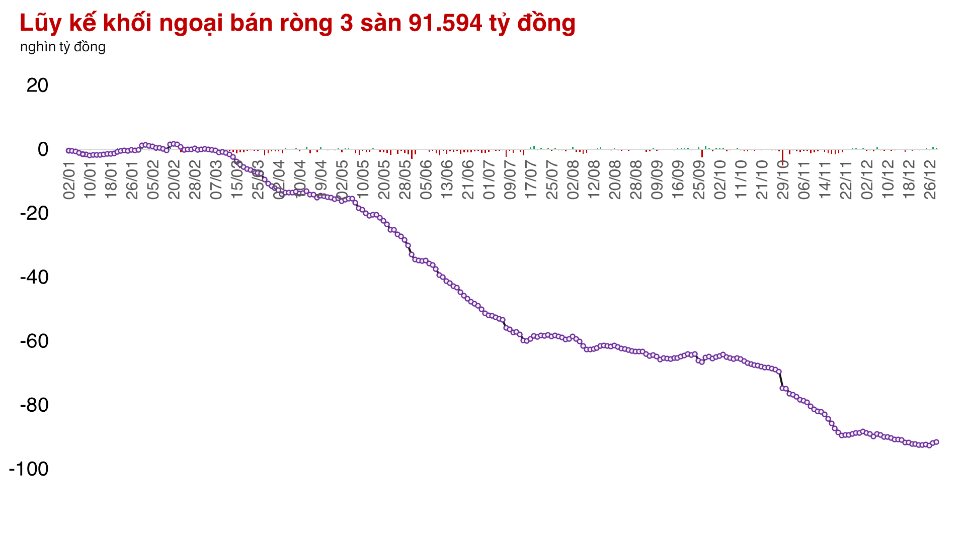 Trong khi đó, nhà đầu tư nước ngoài có phiên mua ròng thứ 2 liên tiếp với giá trị ròng gần 360 tỷ đồng. Các mã STB (+156,72 tỷ đồng), CTG (+87,5 tỷ đồng), PDR (+70 tỷ đồng), HDB (+70 tỷ đồng), SSI (+50,8 tỷ đồng) được khối ngoại mua vào tốt nhất.