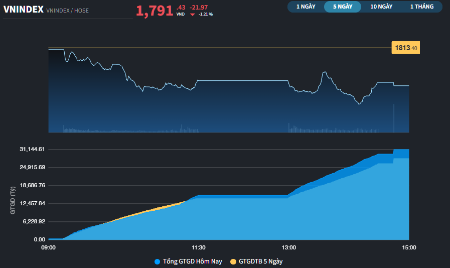 Tuy nhiên, VN-Index lại quay đầu và tạm thời đánh mất mốc 1.800 điểm. Chỉ số đóng cửa tại 1.791 điểm.