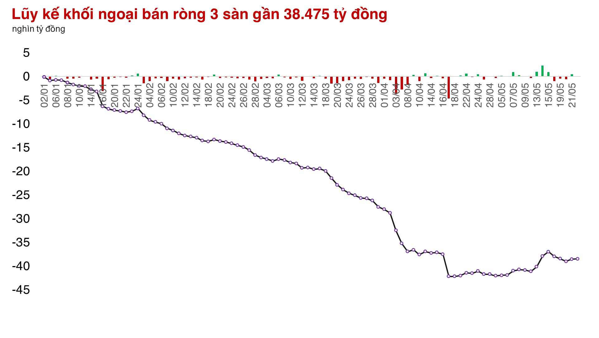 Nhà đầu tư nước ngoài chỉ còn mua ròng hơn 100 tỷ đồng trên HOSE với VIX (+147 tỷ đồng), MWG (+134 tỷ đồng), EIB (+111 tỷ đồng), VHM (+111 tỷ đồng) được giải ngân tốt nhất.
