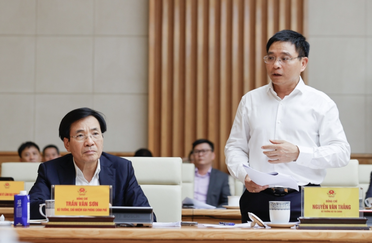 Bộ trưởng Bộ Tài chính Nguyễn Văn Thắng phát biểu tại cuộc họp - Ảnh: VGP/Nhật Bắc
