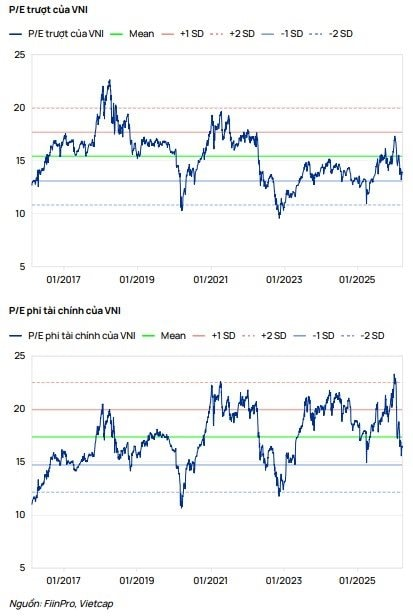 Sau đà giảm sâu trong tháng 3, P/E của VN-Index đã lùi dưới mức trung vị 10 năm, về khoảng 15,2 lần. Mức định giá gần với -1 độ lệch chuẩn này của chỉ số cho thấy sự hấp dẫn về mặt giá trị của thị trường, đặc biệt trong bối cảnh Chính phủ vẫn đang kiên định với mục tiêu tăng trưởng 2 con số trong những năm tới.