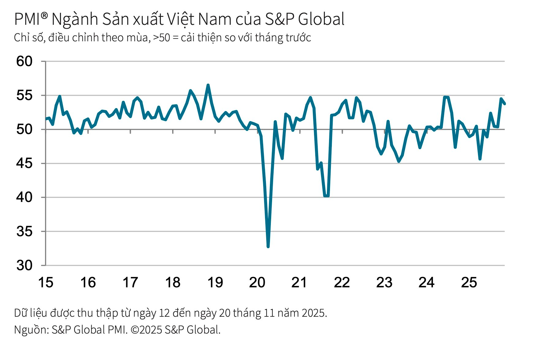 "Dù gặp gián đoạn từ bão, ngành sản xuất Việt Nam vẫn cho thấy nền tảng hồi phục rõ rệt và có tiềm năng tiếp tục tăng trưởng trong những tháng tới khi các công ty theo kịp các dự án bị trì hoãn”, vị chuyên gia cho hay.