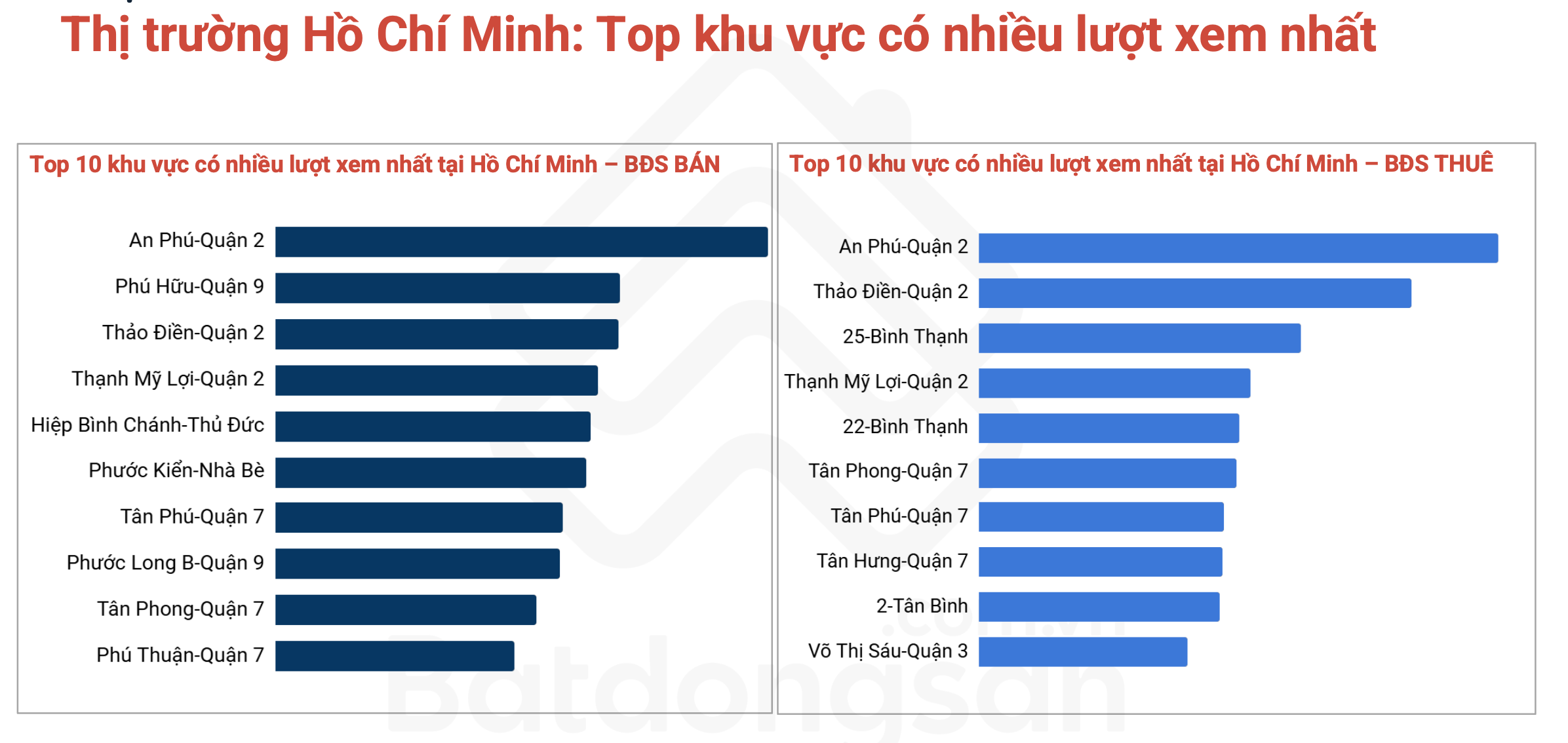 Riêng trong tháng 9/2205, đơn vị này chỉ ra top các khu vực có nhiều lượt xem bất động sản nhất tại 3 khu vực Hà Nội, TP.HCM và các tỉnh thành khác.