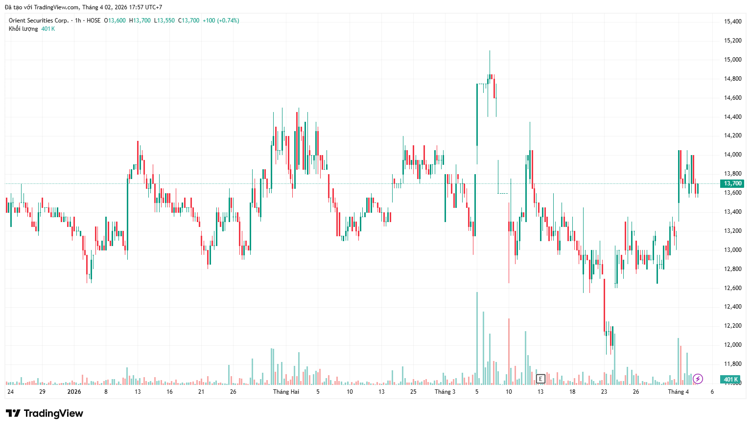 Đóng cửa phiên giao dịch ngày 2/4, giá cổ phiếu ORS ở mức 13.700 đồng/cổ phiếu, tăng gần 3,8% so với đầu năm 2026, vốn hóa thị trường đạt 8.547 tỷ đồng.