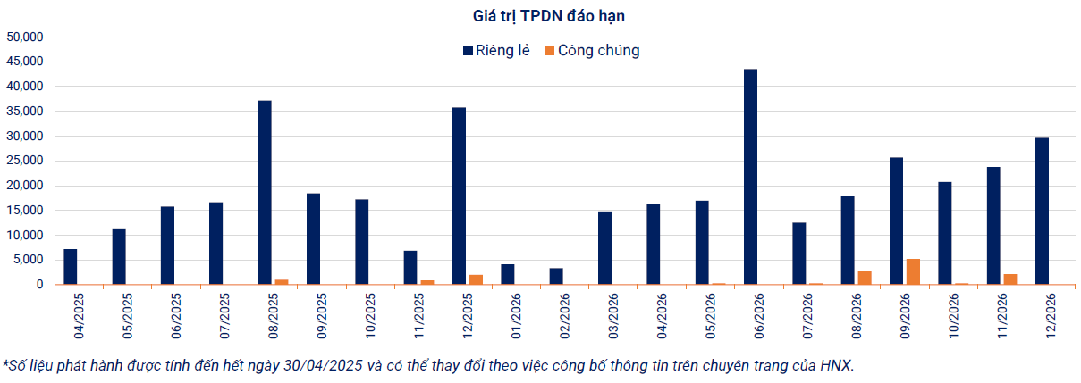 Ở chiều ngược lại, áp lực đáo hạn đối với trái phiếu bất động sản trong năm nay vẫn là vấn đề đáng lưu ý. Theo dữ liệu của VBMA, trong 8 tháng còn lại của năm 2025, ước tính sẽ có khoảng 163.212 tỷ đồng trái phiếu đáo hạn, trong đó phần lớn là trái phiếu bất động sản với 86.444 tỷ đồng, tương đương 53%. Áp lực đáo hạn của doanh nghiệp bất động sản sẽ tập trung vào quý III và quý IV/2025.