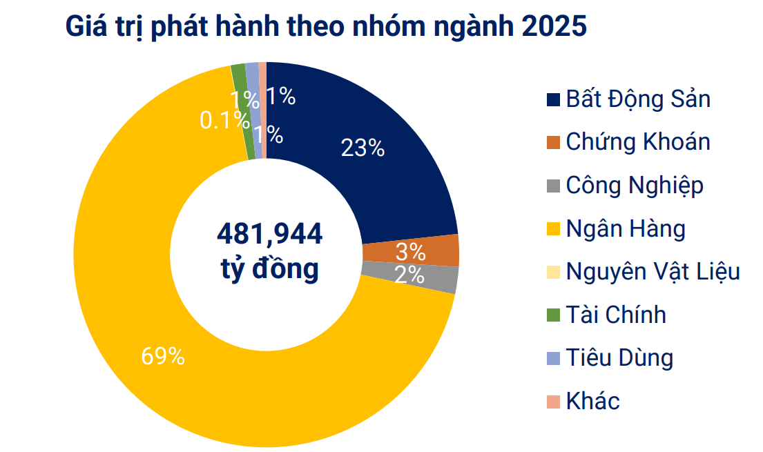 Lũy kế 10 tháng đầu năm, giá trị phát hành riêng lẻ là hơn 431.361 tỷ đồng và phát hành ra công chúng là 50.583 tỷ đồng. Trong đó, nhóm ngân hàng chiếm 69% và nhóm bất động sản chiếm 23%.