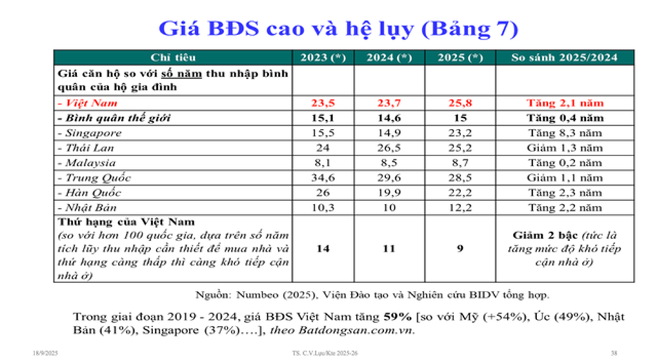 Chia sẻ tại diễn đàn, TS Cấn Văn Lực cho rằng, một công chức tại Việt Nam hiện cần tới gần 26 năm làm việc mới có thể mua được một căn hộ chung cư. Điều này phản ánh thực trạng giá bất động sản tăng nhanh hơn nhiều so với thu nhập, tạo nên khoảng cách lớn so với mức bình quân thế giới.