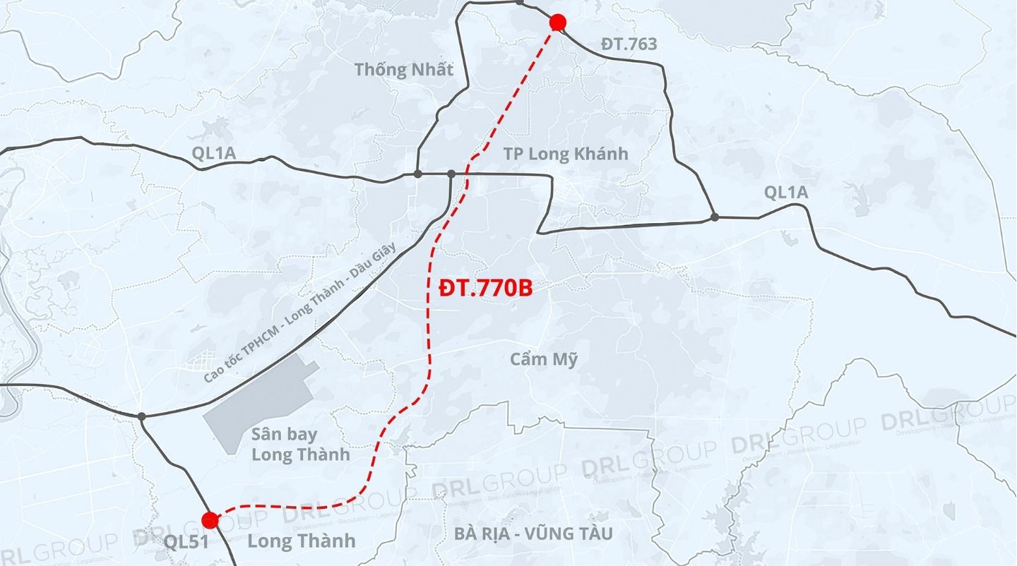 Dự án đường ĐT 770B là tuyến đường sẽ được đầu tư xây dựng mới với chiều dài hơn 42km, đi qua địa bàn các huyện: Định Quán, Thống Nhất, Cẩm Mỹ, Long Thành và thành phố Long Khánh (Đồng Nai).