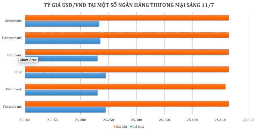 Trên thế giới, đồng USD giảm khá mạnh khi tại phiên điều trần trước Ủy ban Dịch vụ Tài chính Hạ viện Mỹ vào ngày 10/7, Chủ tịch Cục Dự trữ Liên bang Mỹ (Fed) Jerome Powell bất ngờ cho biết, Fed sẽ không đợi cho đến khi lạm phát giảm xuống mức mục tiêu 2% mới bắt đầu cắt giảm lãi suất.