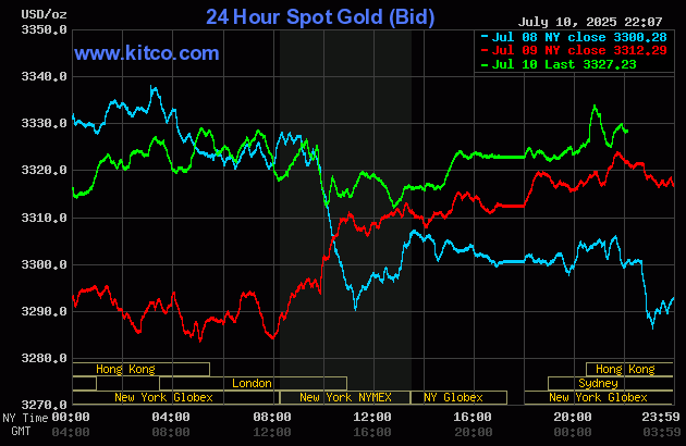 Hiện, giá vàng giao ngay trên Kitco đang được giao dịch ở mức 3.327,23 USD/ounce, tăng 14,9USD, tương đương 0,45% so với chốt phiên trước. Quy đổi theo tỷ giá tại Vietcombank, giá vàng thế giới đang được giao dịch ở mức 105,5 triệu đồng/lượng, thấp hơn giá vàng trong nước khoảng 13,3 triệu đồng/lượng.