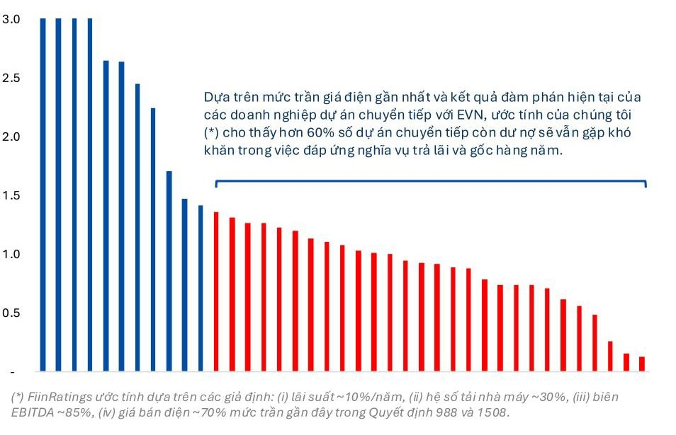 Tuy nhiên, theo FiinRatings, thách thức về khả năng huy động vốn vẫn tồn tại do chính sách giá thiếu ổn định, tình trạng nghẽn lưới và rủi ro cắt giảm công suất, cùng sự chênh lệch tiền tệ giữa khoản vay bằng USD và doanh thu bằng VND.