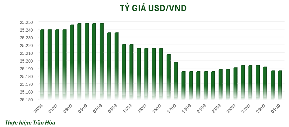 Vào sáng nay, tỷ giá trung tâm đang được niêm yết ở mốc 25.187 VND/USD, không thay đổi so với phiên liền trước. Tại một số ngân hàng thương mại, giá USD biến động nhẹ so với sáng qua.