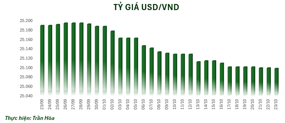Vào sáng nay, tỷ giá trung tâm đang được niêm yết ở mốc 25.098 VND/USD, giảm 1 đồng so với giá khảo sát chiều qua. Tại một số ngân hàng thương mại, giá USD biến động nhẹ theo tỷ giá trung tâm.