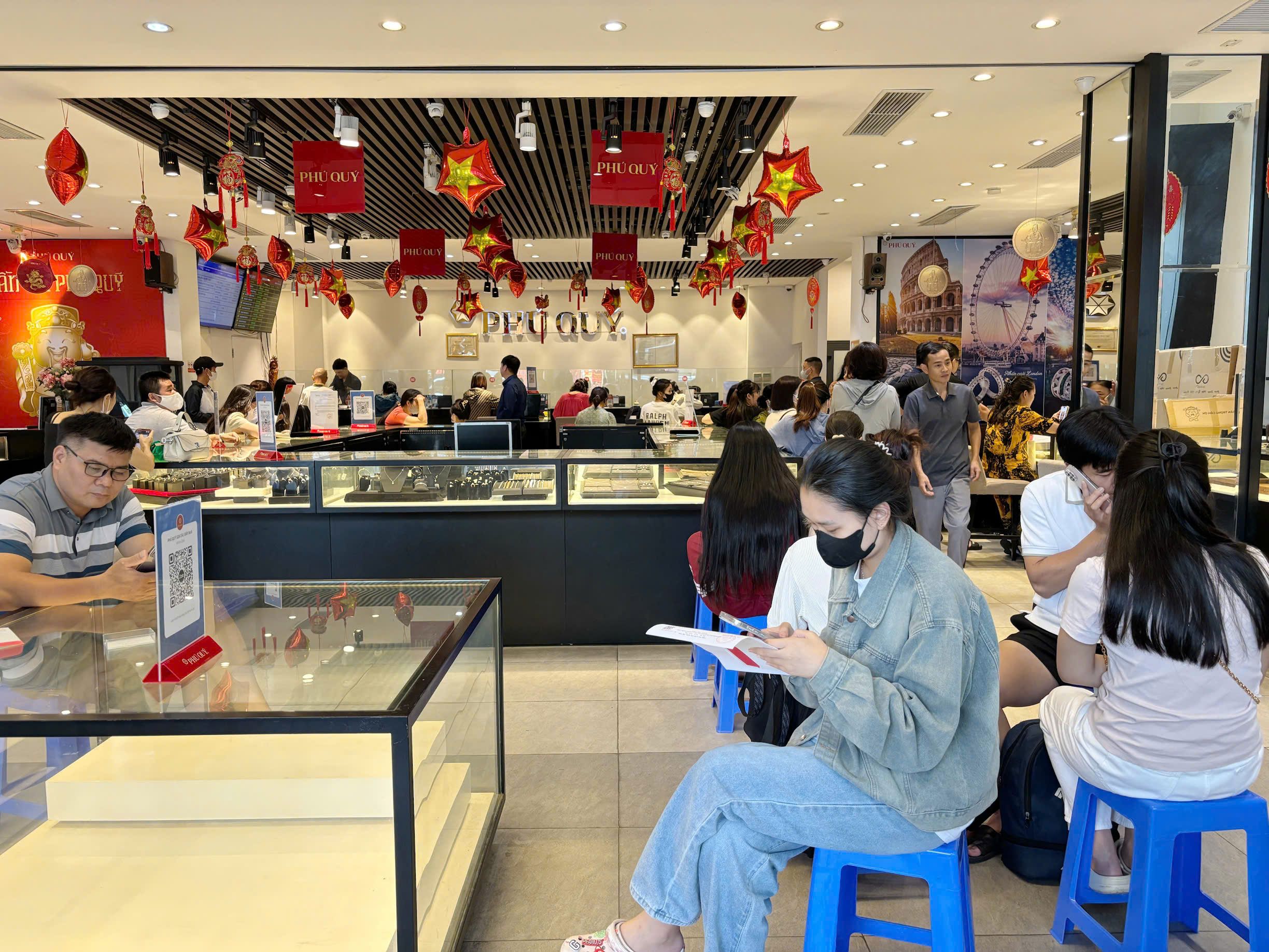 Ghi nhận tại cửa hàng Phú Quý trên đường Cầu Giấy (Hà Nội) sáng 16/10, từ hơn 6h sáng người mua đã xếp hàng đông đúc. Nhân viên cửa hàng bắt đầu phát số từ 6h30 sáng và đến hơn 7h đã hết số. Số lượng người mua được giới hạn ở mức 150 người và những người không lấy được số sẽ phải quay lại vào sáng hôm sau.