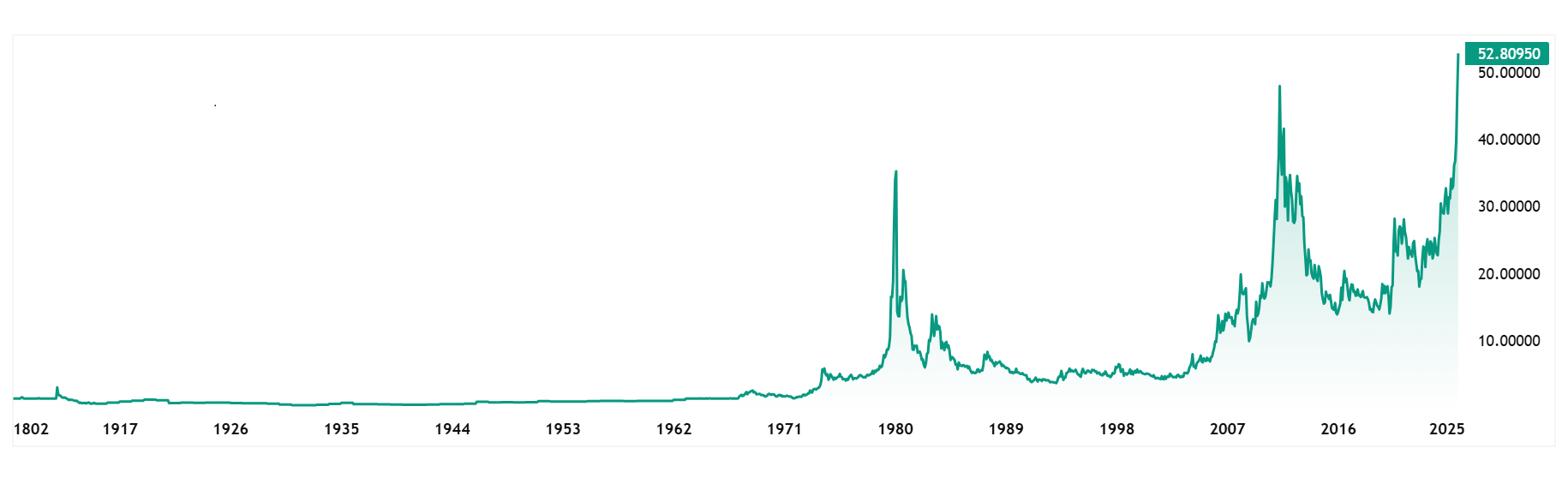 Trên thị trường thế giới, đà tăng của bạc thời gian qua thậm chí vượt trội so với đà tăng của vàng. Trong báo cáo gần đây, các nhà phân tích tại GSC Commodity Intelligence cho biết, sự bứt phá này không phải là một đợt tăng giá đơn lẻ. Đà tăng của giá bạc được thúc đẩy bởi bất ổn địa chính trị, lạm phát và nhu cầu tăng tốc từ quá trình chuyển đổi năng lượng xanh, cùng với cuộc cách mạng trí tuệ nhân tạo trên toàn cầu.