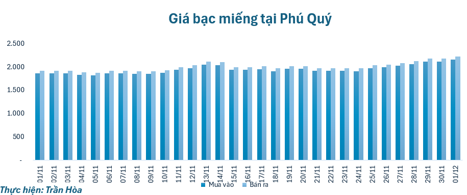 Giá bạc sáng 1/12 biến động mạnh so với giá đóng cửa phiên cuối tuần trước, tại Phú Quý, giá bạc miếng niêm yết ở mốc 2.162.000 – 2.229.000 đồng/lượng, tăng 44.000 đồng chiều mua và tăng 45.000 đồng chiều bán so với chốt phiên tuần trước.