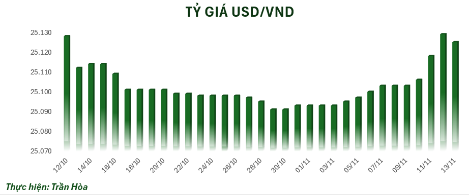 Eximbank tăng mạnh nhất, niêm yết ở mốc 26.140 – 26.381 VND/USD, tăng 50 đồng chiều mua và giảm 4 đồng chiều bán. Techcombank tăng 17 đồng chiều mua và giảm 4 đồng chiều bán, niêm yết ở mốc 26.159 – 26.381 VND/USD. Sacombank tăng 13 đồng chiều mua và giảm 4 đồng chiều bán, niêm yết ở mốc 26.153 – 26.381 VND/USD.
