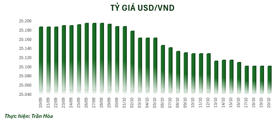 Vào chiều nay, tỷ giá trung tâm đang được niêm yết ở mốc 25.101 VND/USD, không thay đổi so với mốc đóng cửa tuần trước. Tại một số ngân hàng thương mại, giá USD biến động nhẹ.