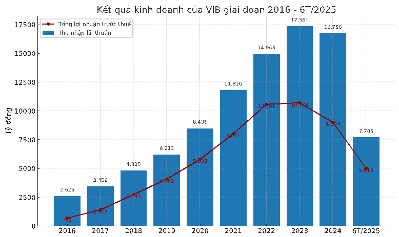Về hoạt động kinh doanh, trong quý II/2025, VIB ghi nhận thu nhập lãi thuần gần 3.969 tỷ đồng, giảm 8% so với cùng kỳ năm trước, nhưng lợi nhuận trước thuế vẫn đạt gần 2.596 tỷ đồng, tăng 23% nhờ cắt giảm mạnh chi phí dự phòng rủi ro tín dụng.