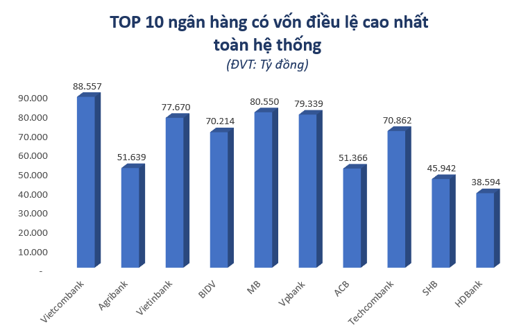 Sau khi tăng vốn, Vietinbank đứng thứ 4 trong top 10 ngân hàng có vốn điều lệ cao nhất toàn hệ thống. Đứng đầu là Vietcombank với 88.557 tỷ đồng, tiếp đến MB (80.550 tỷ đồng), VPBank (79.339 tỷ đồng), Vietinbank (77.670 tỷ đồng), Techcombank (70.862 tỷ đồng), BIDV (70.214 tỷ đồng), Agribank (51.639 tỷ đồng), ACB (51.366 tỷ đồng), SHB (45.942 tỷ đồng), HDBank (38.594 tỷ đồng).