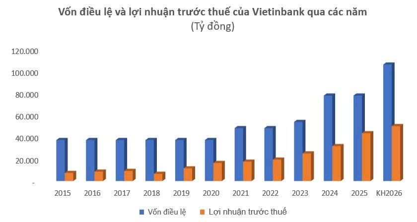 Chứng khoán Vietcombank (VCBS) dự báo thu nhập hoạt động quý 1/2026 của Vietinbank đạt 23.537 tỷ đồng (+15%), lợi nhuận trước thuế 8.789 tỷ đồng (+29%). Cả năm 2026, lợi nhuận trước thuế có thể đạt 49.911 tỷ đồng (+15%), với NIM cải thiện từ nửa cuối năm 2026 nhờ tăng trưởng đồng thời ở cả huy động và cho vay. Việc thành công trong kế hoạch tăng vốn cũng được xem là yếu tố hỗ trợ triển vọng dài hạn.