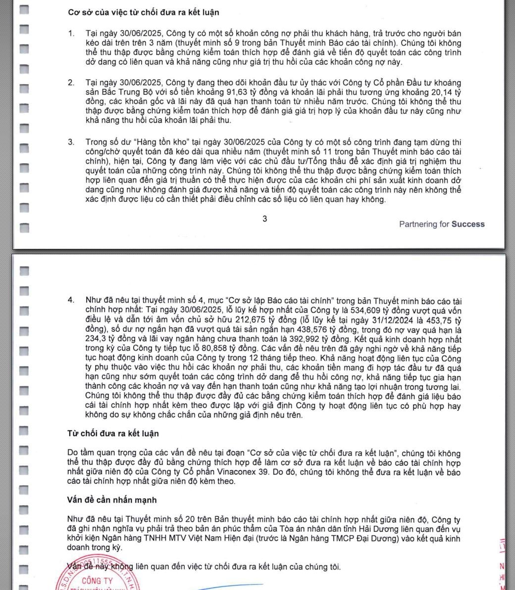 Không những kết quả kinh doanh bán niên “kém sắc”, kiểm toán còn từ chối đưa ra kết luận đối với BCTC giữa niên độ của doanh nghiệp này do không thu thập được băng chứng thích hợp ở nhiều hạng mục, cụ thể: