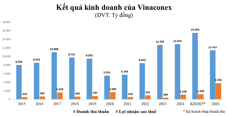 So với kế hoạch năm được đề ra là 15.500 tỷ đồng doanh thu và 1.200 tỷ đồng lợi nhuận sau thuế, Vinaconex đã hoàn thành 73% mục tiêu doanh thu và đạt vượt 215% kế hoạch lợi nhuận cả năm chỉ sau 9 tháng.