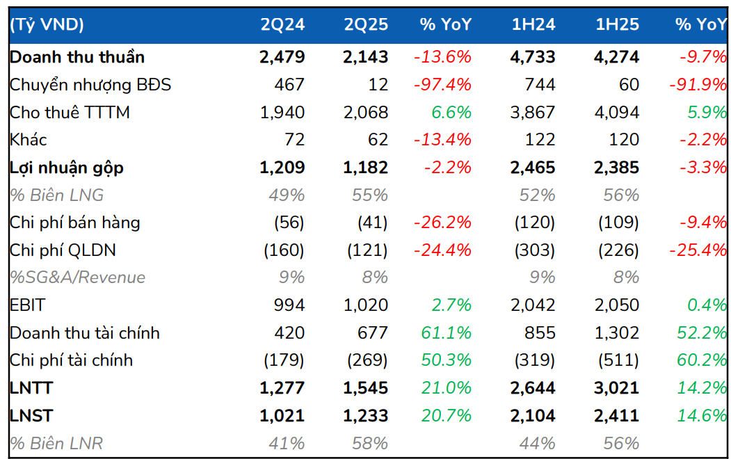 Công ty cũng đã cải thiện tỷ lệ lấp đầy trung bình của các trung tâm thương mại từ mức đáy 82,8% trong quý I/2024 lên 86,3% trong quý II/2025, chủ yếu nhờ sự thay đổi trong cơ cấu khách thuê (tăng diện tích cho các khách thuê trong lĩnh vực ăn uống, giải trí và phong cách sống).