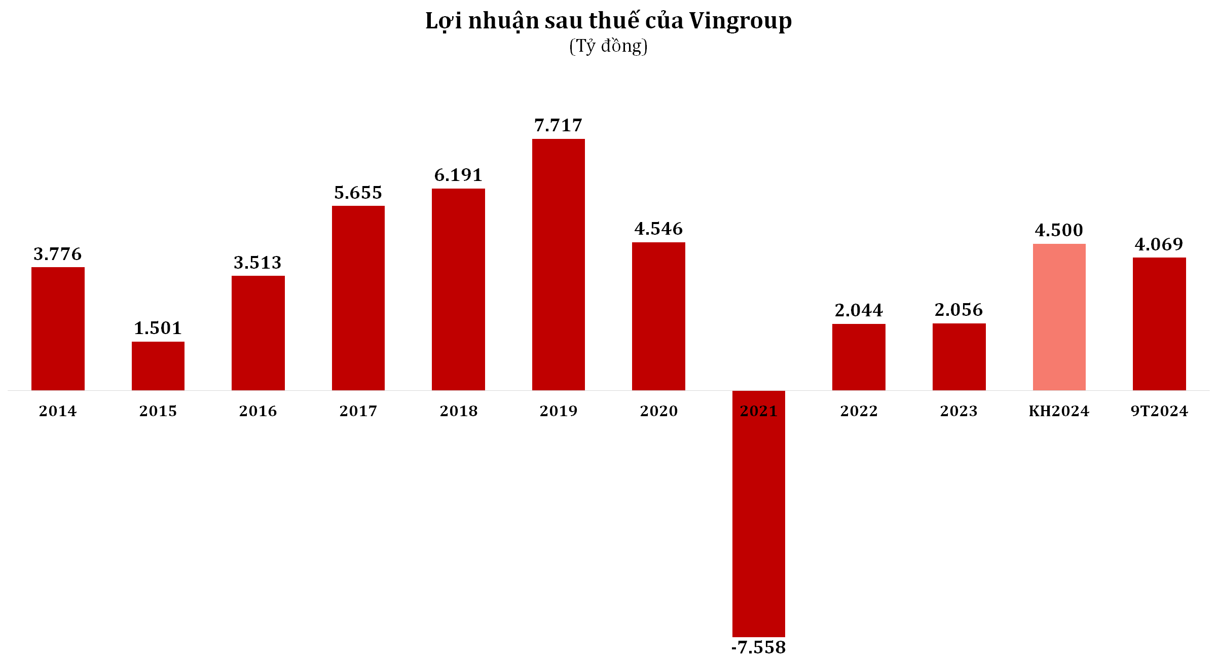 So với kế hoạch 200.000 tỷ đồng doanh thu và 4.500 tỷ đồng lợi nhuận sau thuế đề ra cho cả năm 2024, Vingroup đã thực hiện được 63% chỉ tiêu doanh thu và 90% chỉ tiêu lợi nhuận sau 9 tháng.