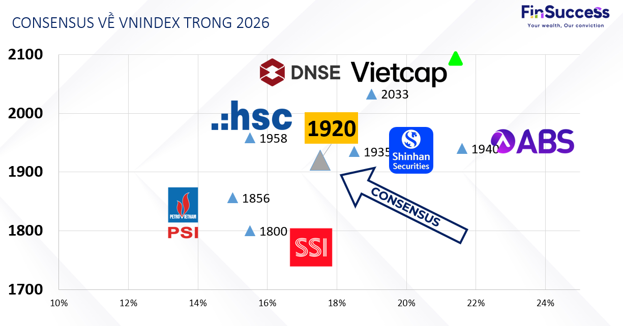 Theo ông Trung, đang có sự đồng thuận cao về khả năng tăng trưởng của thị trường khiến ông có sự thận trọng. Nhiều dự báo cho rằng VN-Index có thể đạt quanh 1.920 điểm trong năm 2026, tương đương mức tăng khoảng 15%.