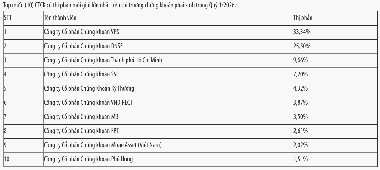 Như vậy, tổng thị phần của hai doanh nghiệp này đạt gần 60%, phản ánh mức độ tập trung ngày càng cao trong mảng phái sinh.